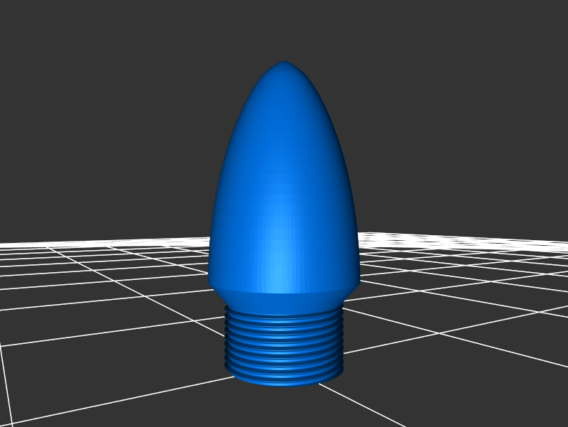 已經添加了“平頂帽”stl文件,對于想要一個看起來像沒有尖頭子彈的子彈殼的容器的人來說。這為外殼提供了一個螺紋帽,它與子彈帽一樣擰緊。