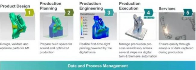 圖片:西門子產(chǎn)品設計與生產(chǎn)以及數(shù)據(jù)管理過程,用于3D打印-增材制造
