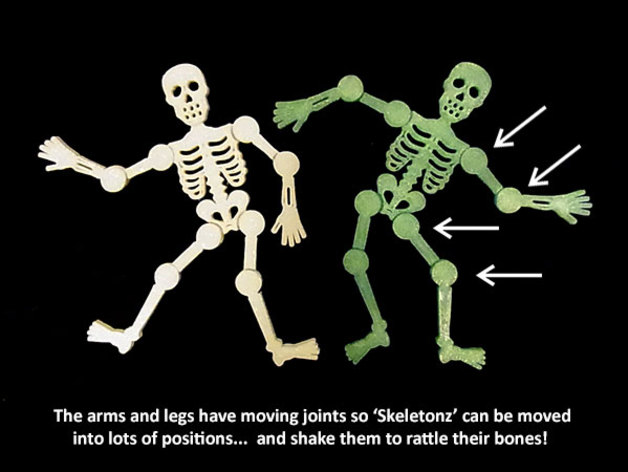 'Skeletonz'是一個(gè)有趣的單件印花圖案,有移動(dòng)的手臂和腿......搖動(dòng)它,骨頭發(fā)出嘎嘎聲!