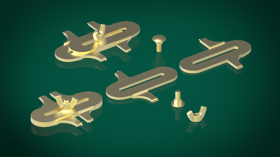一個簡單的制造金屬板工具與兩個不同的螺旋刀片對。 特別適用于墻式和長箱式鐘表鐘盤中心螺母的開合。