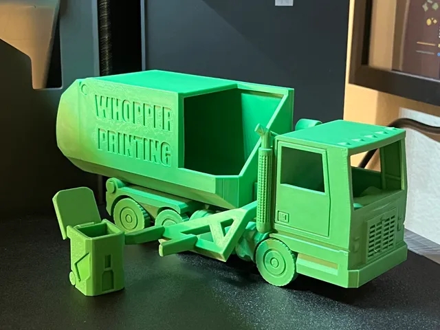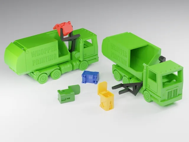 卡車有一個工作杠桿,用來撿起垃圾桶和傾倒里面的東西,一個工作的后門,和滾動的車輪,以增加功能。垃圾桶還有滾動的輪子和一個功能蓋子。對于那些有小打印床,可以通過旋轉模型45度來打印。確保您有堅實的床粘附,您的打印機可以打印公差小至0.3毫米。如果你不確定,試著打印這個。它有相同的公差,但它是一個更小的模型和一個很好的測試。注意:有兩個版本,一個標準版本和一個迷你版本。這些不只是彼此之間的縮放版本。它們被專門修改,以在兩個版本之間共享相同的公差。一定要選擇一對合適的垃圾車和垃圾桶。也要知道,較小的模型將有更小的關節和碎片,這將使它比較大的版本更弱。如果你打印迷你版本,你可以通過增加墻的數量來補償。
