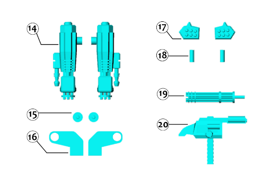 武器:雙側繞線炮、肩射導彈發射器和雙微型火炮。