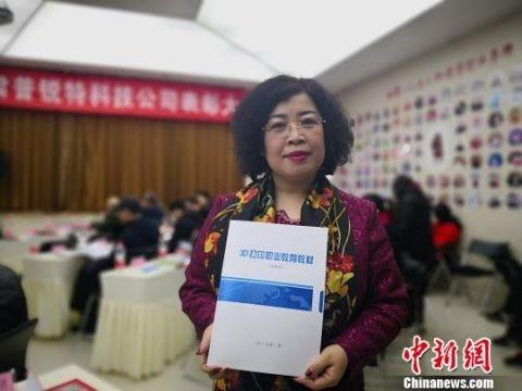 圖為潘盈介紹首版《3D打印職業教育教材》。 魏建軍 攝